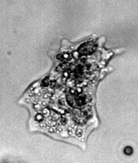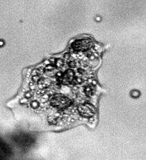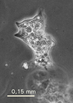 Amøber er encellede dyr, som bevæger sig ved at udsende cytoplasmaudløbere (pseudopodier). Cytoplasmaet er delt i to dele: et indre, letflydende, grynet endoplasma og et tyndt, ydre, klart og stivere ektoplasma. Dyret lever af bakterier, ciliater, flagellater, alger og andet, som det kan indfange med psedopodierne: når pseudopodierne flyder sammen omkring byttet, kommer dette til at ligge i et lille hulrum (en næringsvakuole) i cytoplasmaet og bliver langsomt fordøjet.